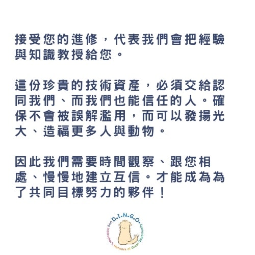 近一兩年來,詢問進修的訓練師/諮詢師/保姆/其他營業型態主理者…越來越多。 先謝謝大家對我們、以及對訓練專業的認同。