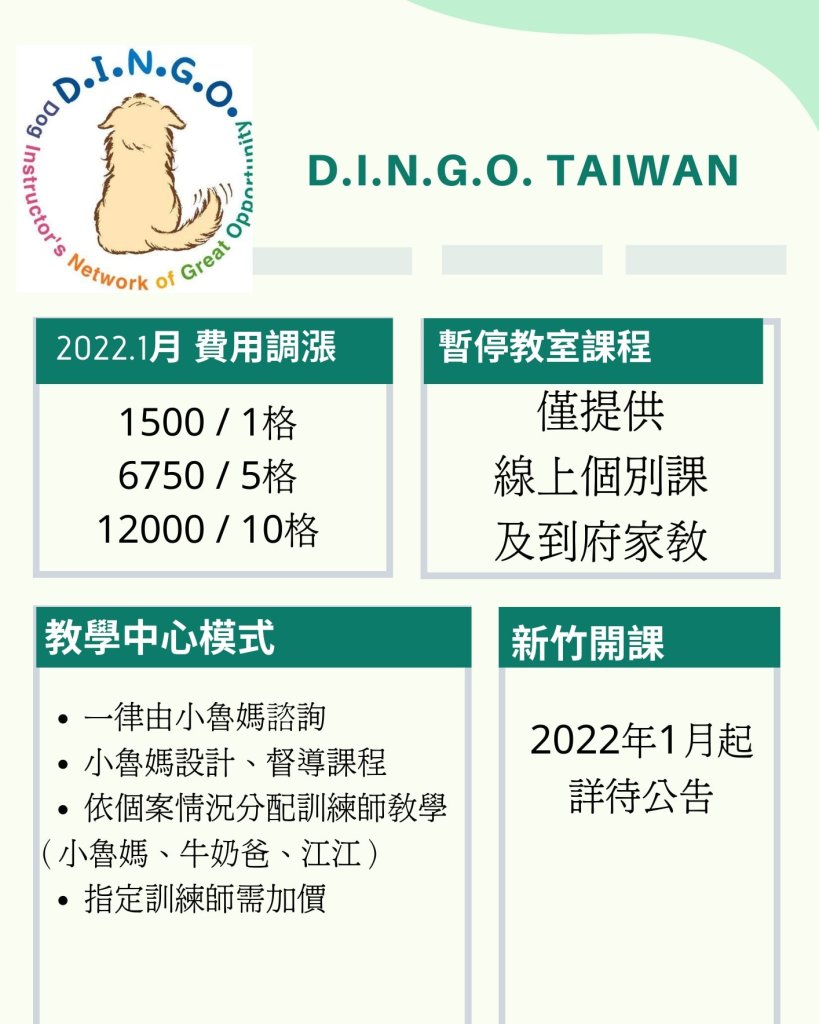 2022 年 4 月 8 日2022 年 5 月 1 日 dingo course 2022 D.I.N.G.O. Taiwan 全新教學方式 沒在圖片上的1. 為了繼續推廣行為教育,我們會再舉辦更實惠經濟的系列課程2. 明年三月有特別活動企劃中 分享此文: 分享到 X(在新視窗中開啟) X 分享到 Facebook(在新視窗中開啟) Facebook 更多 分享到 WhatsApp(在新視窗中開啟) WhatsApp 分享到 LinkedIn(在新視窗中開啟) LinkedIn 喜歡 正在載入... 相關