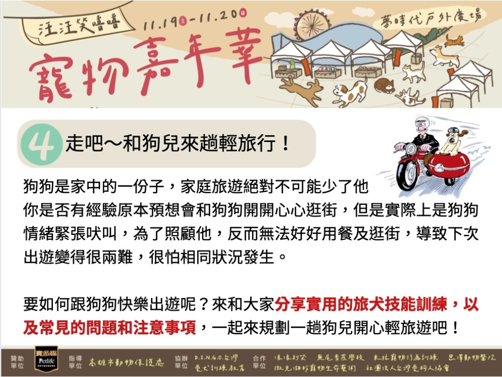 ◆報名費用:150元/組 (包含四關園遊券一張、抽獎券一張、完賽獎狀一張),每組包含一位毛孩與一位主人。