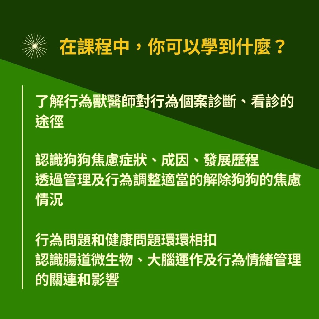 2023 年 2 月 12 日2023 年 2 月 20 日 dingo course 【招生中】Dr. Lore Haug 行為獸醫師- 認識行為醫學 : 犬行為、訓練、焦慮、腸腦軸對行為的影響、及藥物運用 報名表單連結:https://forms.gle/1eJj1B1YWhfaZXVC7