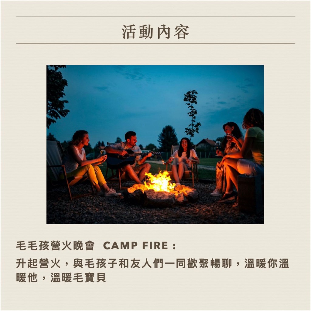 在自然的環境裡,用心花上一天一夜的時間,好好跟狗狗相處。不用擔心會成為不受歡迎的特殊份子,因為周遭盡是懂得你跟你的狗怎樣才會感到舒服的人,那些跟你一樣 — 帶狗狗上學,認真要讓與狗一起生活的日子,變得更好的人。