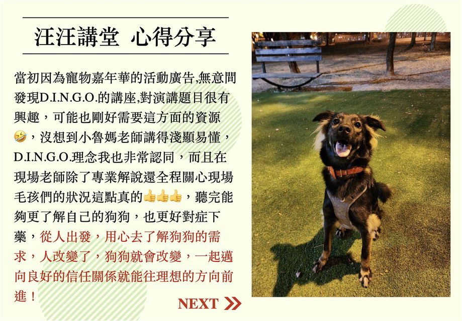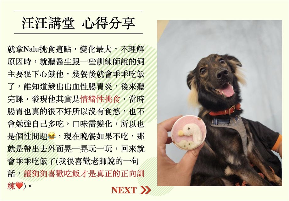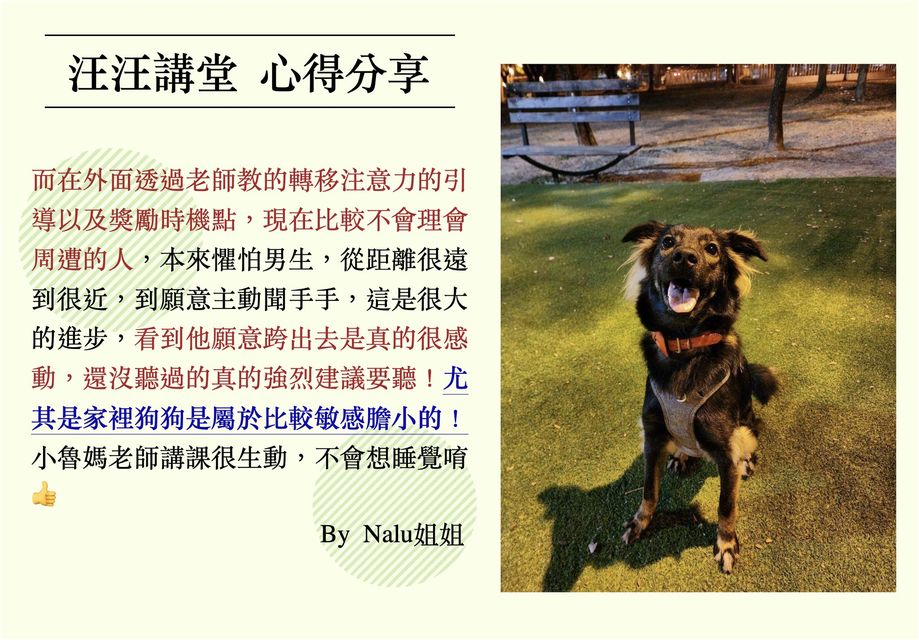 此篇汪汪講堂的心得分享講者>>> Nalu姊姊