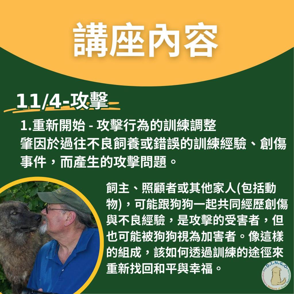 這次講座內容會以攻擊及目前台灣狗狗現況為主軸