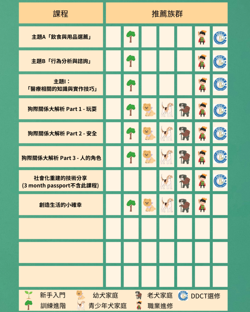《狗際關係大解析》講座長度約3.5小時/三堂,1000元/三堂(效期內DDCT/AS 8折, 學員9折)