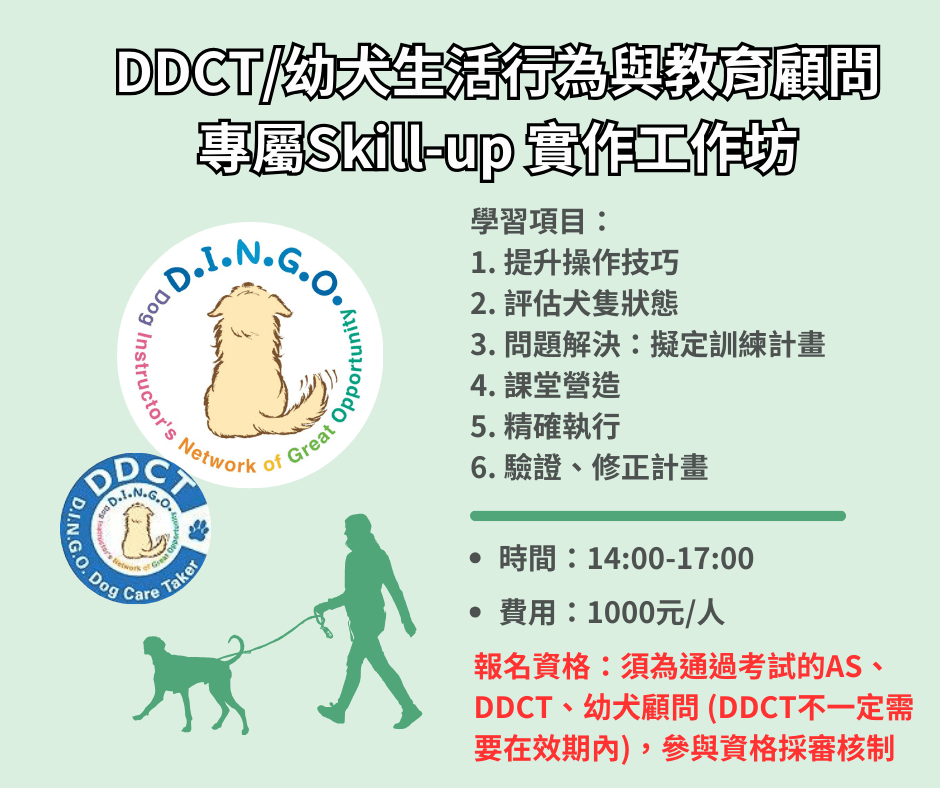 【報名資格】須為通過考試的AS、DDCT、幼犬顧問 (DDCT不一定需要在效期內),參與資格採審核制