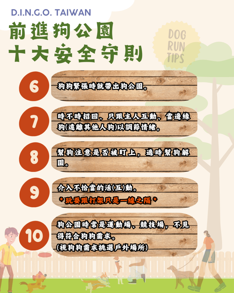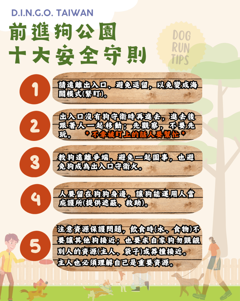 2024 年 3 月 11 日 dingo course 【最新消息】前進狗公園─十大安全守則 #狗公園 #安全守則 #必讀 擁有狗寶貝的您~今天也前往狗公園奔跑了嗎? 幾乎每天都去運動、交朋友、放空的好所在, 其實一不小心也會有潛藏危機! . 從入口開始到離開為止, 享受開心奔跑的同時,您是否也有觀察到那些危機陷阱, 還是自己不小心就成為其他家庭的陷阱了呢? . 一起來看看有那些重要守則, 除了幫自家寶貝建立安全資訊庫,也一同讓狗公園成為真正的快樂場所吧! . ※ 歡迎全文(含圖片)分享 ※ ※ 讓更多人一起了解 ※ ※ 完整學習歡迎搜尋「線上學堂-狗際關係大解析」※ 分享此文: 分享到 X(在新視窗中開啟) X 分享到 Facebook(在新視窗中開啟) Facebook 更多 分享到 WhatsApp(在新視窗中開啟) WhatsApp 分享到 LinkedIn(在新視窗中開啟) LinkedIn 喜歡 正在載入... 相關