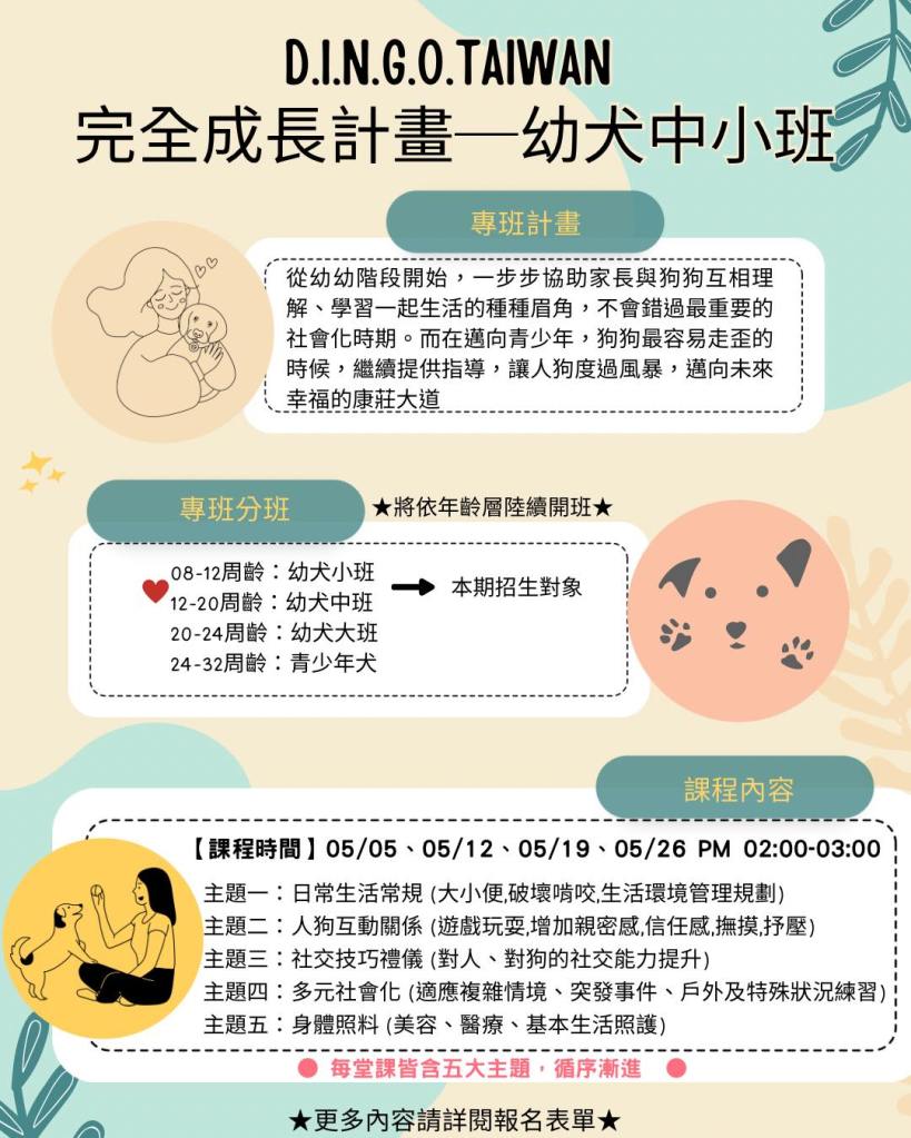 【D.I.N.G.O.TAIWAN 完全成長計畫─幼犬中小班】開課囉!