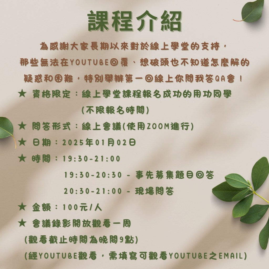 ★ 問答形式★ 線上會議(使用ZOOM進行)