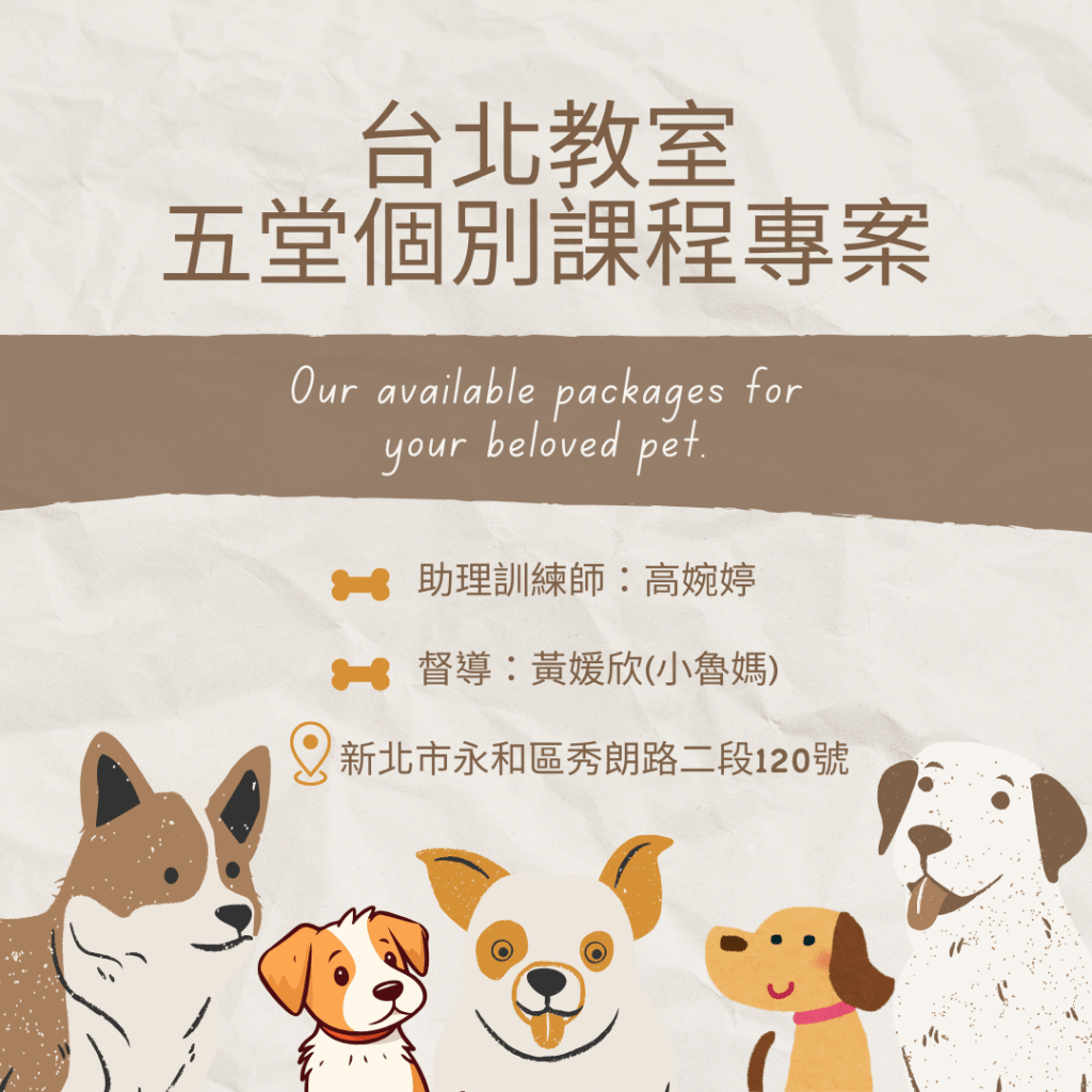 – 主人需與狗狗一起來教室上課,將會視情況安排家教或戶外課(交通費用另計)。