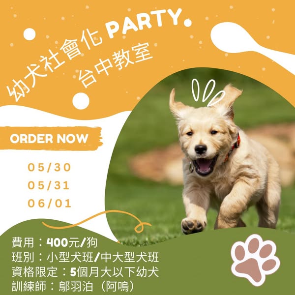幼犬社會化Party又來囉!台中的幼幼們快點來參加![]()