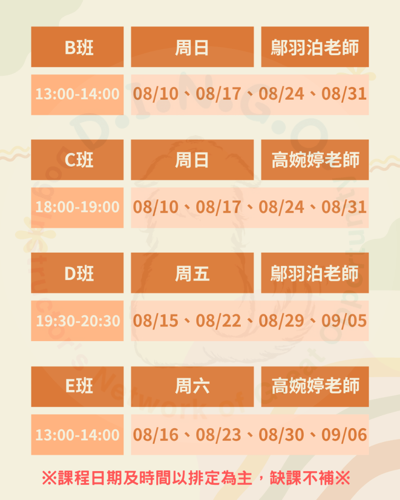 [13:00-14:00] 08/16、08/23、08/30、09/06 (六)