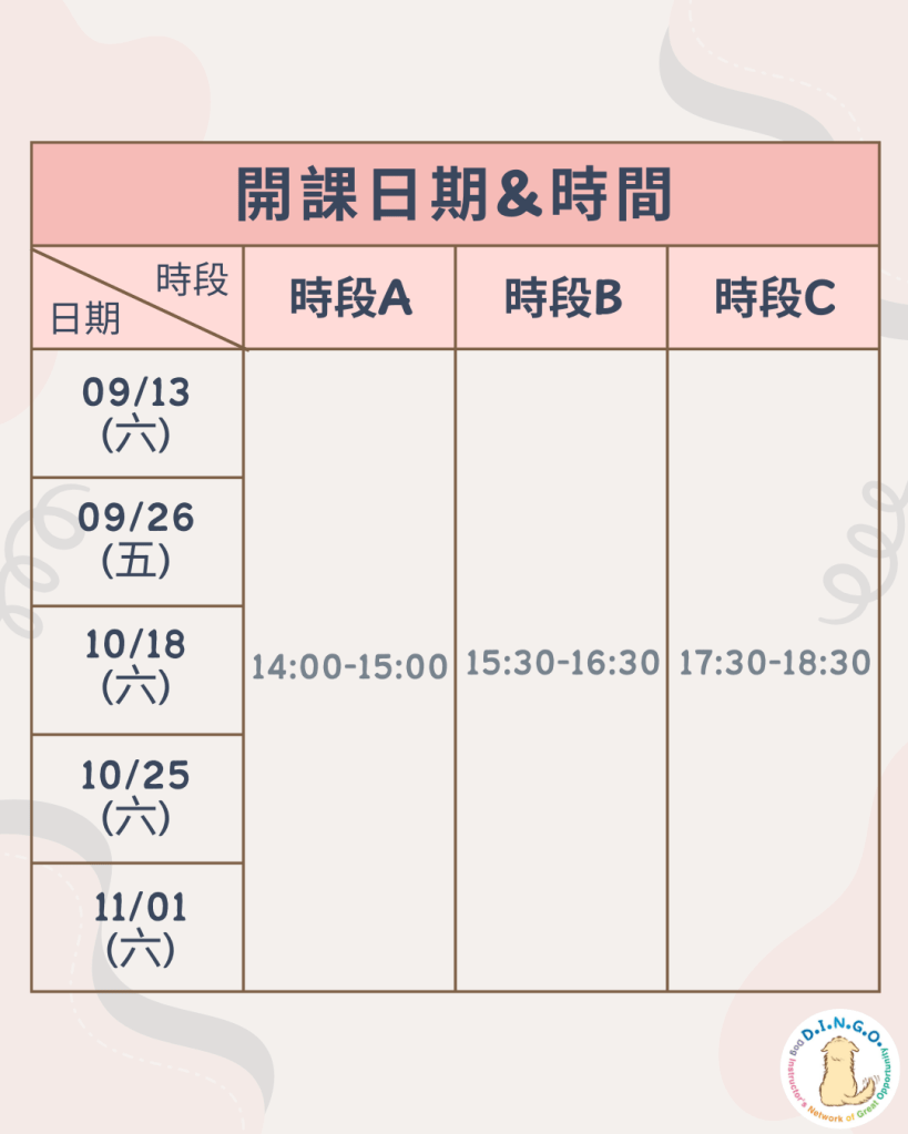 *已諮詢過的狗狗,則不需重新諮詢,第一堂即依照之前諮詢的評估開始上課
