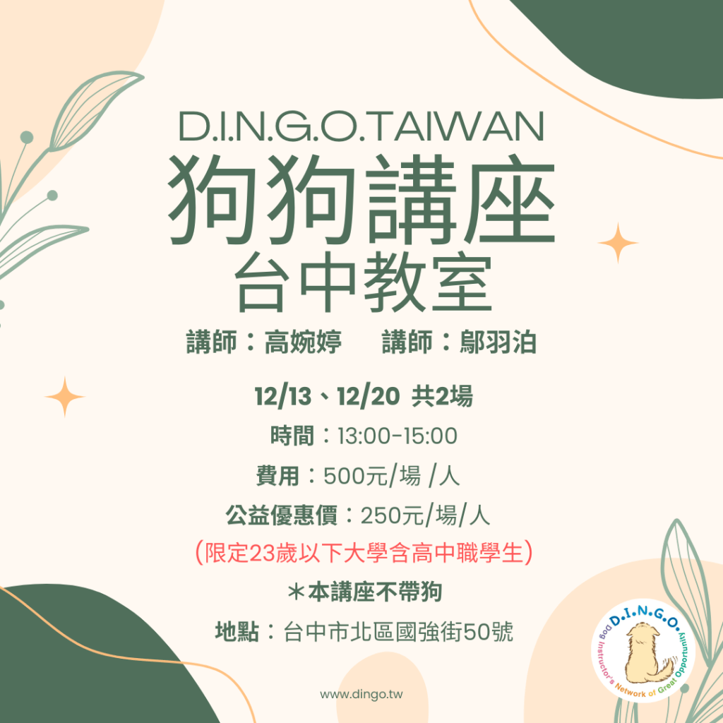 【上課地點】台中市北區國強街50號 D.I.N.G.O. 台中教室