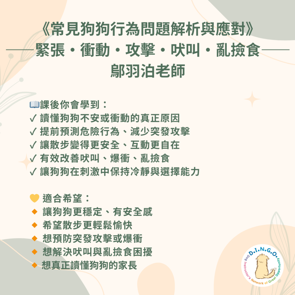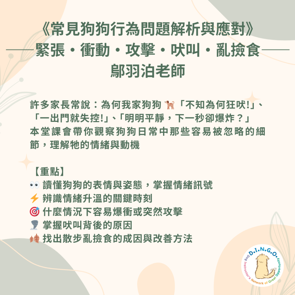 常見狗狗行為問題解析與應對 -緊張、衝動、攻擊、吠叫、亂撿食 ─鄔羽泊老師