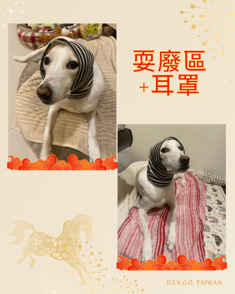 狗狗也有,一連好幾天要面對鞭炮、煙火的日子。