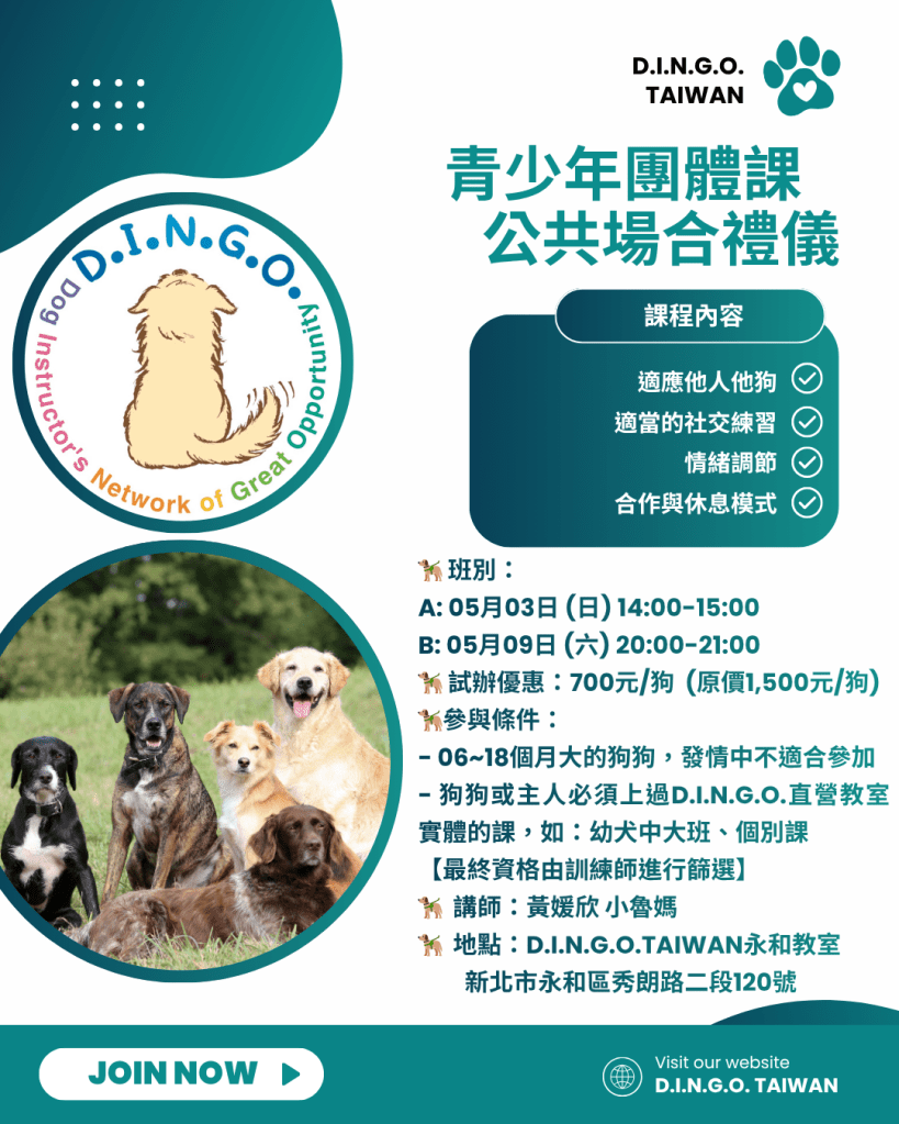 地點:D.I.N.G.O.TAIWAN 永和教室(新北市永和區秀朗路二段120號)